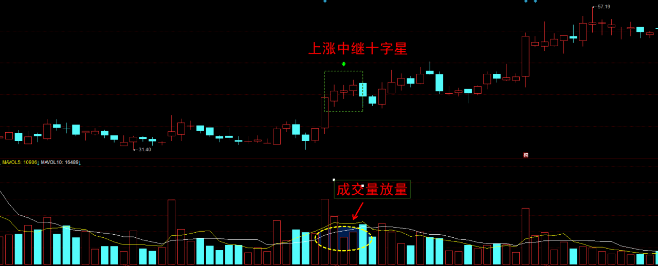 资金是市场上涨的原动力,没有新的增量资金的进场,市场是不可能走出真正的筑底行情的,下跌中继在量能上的显著特征就是成交量的不断减少,在盘面上常常表现出一种缩量上涨或者无量空涨的走势,其中不乏有长阳线出现,但是市场整体成交量呈现出阶梯状下行走势。而底部筑底走势往往出现在成交量萎缩到很低的水平之后,即通常所说的地量。虽然股指涨幅尚不明显,但是成交量开始出现逐步释放的特征,形成比较明显的量拖三角。